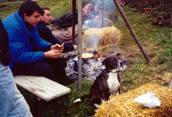 Burgwald. Zusammen am Lagerfeuer sitzen, kochen und Geschichten