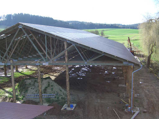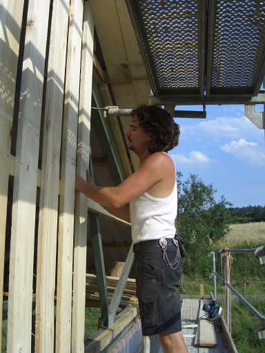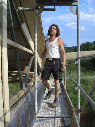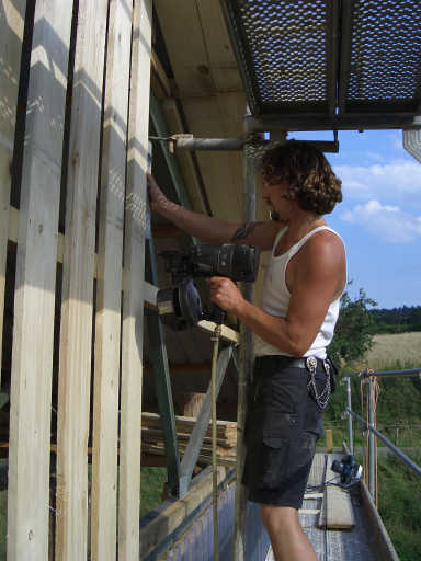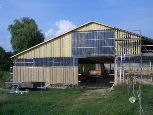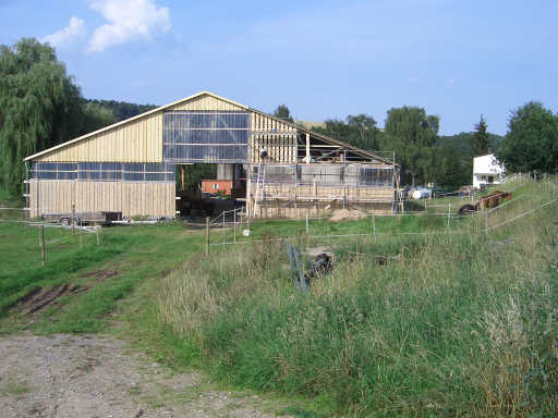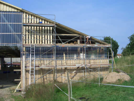 HallenbauDer aktuelle StandJuli 2007 Tobi hat die Verschalung für die Wetterseite fertig.